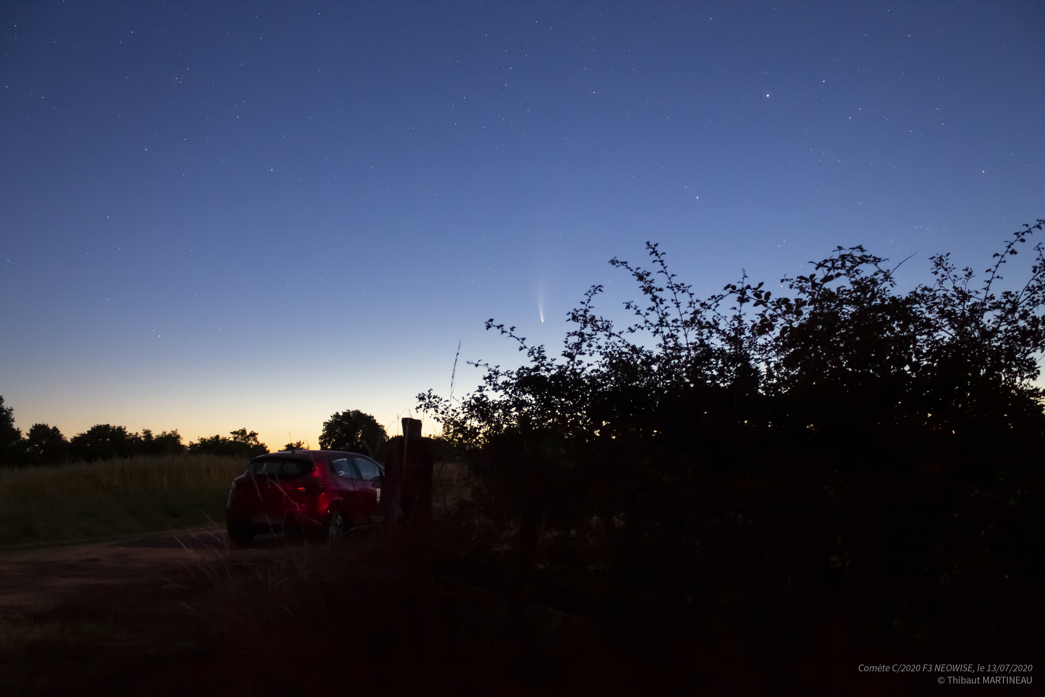 La comète C/2020 F3 NEOWISE est visible cet été 2020, étant passée au plus près du Soleil le 3 juillet.